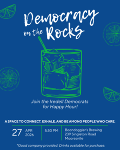 Join the Iredell County Democrats for a relaxed evening of connection and community at our monthly Democracy on the Rocks happy hour. This isn’t a meeting — it’s a chance to unwind, meet new friends, catch up with familiar faces, and spend time with people who care about our community. Good company provided. Drinks available for purchase.